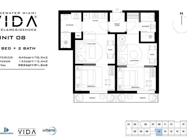 VIDA es un innovador y contemporáneo edificio de 9 pisos ubicado en la vibrante zona de Edgewater, Miami. Cuenta con una variedad de residencias completamente acabadas y amuebladas de estudio, de 1 a 4 dormitorios, con comodidades de alta gama como un moderno centro de fitness, terraza en la azotea con parrillas de barbacoa, espacios de coworking, spa y servicios de conserjería las 24 horas. VIDA también ofrece impresionantes vistas de la Bahía de Biscayne y un Club de Playa. El edificio fue diseñado por Kobi Karp Miami y desarrollado por Urbana Holdings. Es conocido por su capacidad para alquileres a corto plazo, lo que lo convierte en una lucrativa oportunidad de inversión.